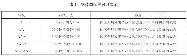根據(jù)評價得分,零碳園區(qū)評價分為5個等級。具體見表1。